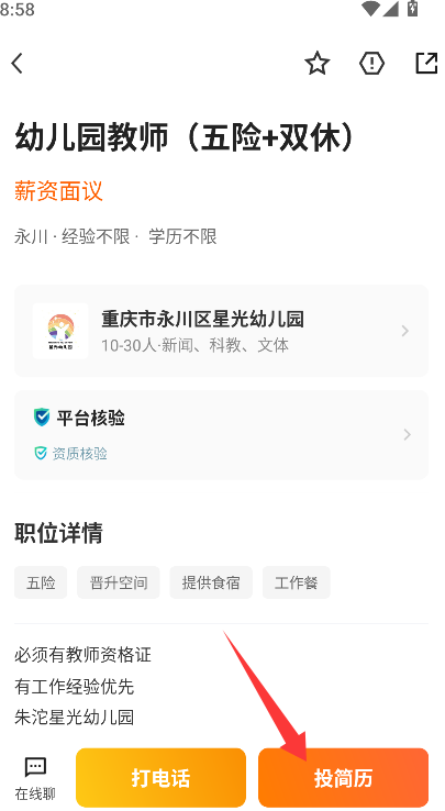 3、当发现满意的职位后,直接点击该职位旁的"投递简历"按钮,系统将自动完成简历投递操作。