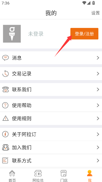 2、找到并点击“登录/注册”按钮,系统将跳转至账号登录与注册的入口页面。