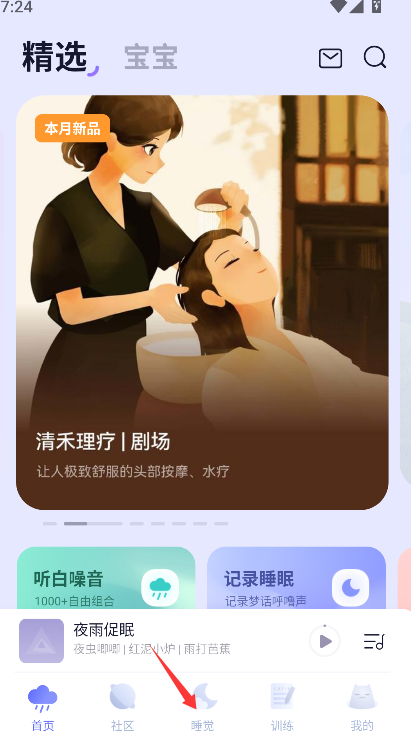 1、在应用主界面底部的导航栏中找到并点击"睡觉"标签页,进入核心睡眠功能界面。