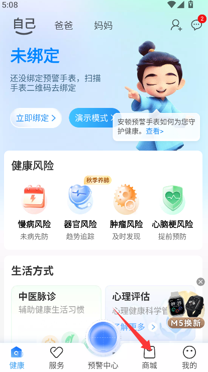 1、点击“商城”选项,即可进入专门的安顿商城界面。