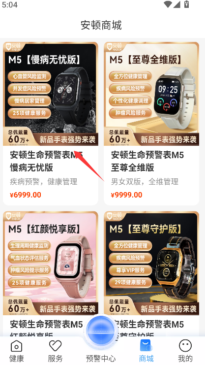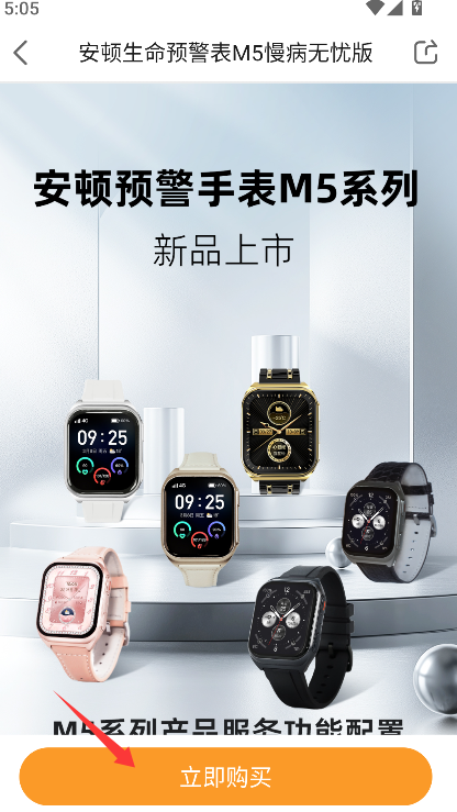 2、浏览并找到“M5慢病无忧版手表”这一商品条目,点击后跳转至该商品的详细规格介绍页。