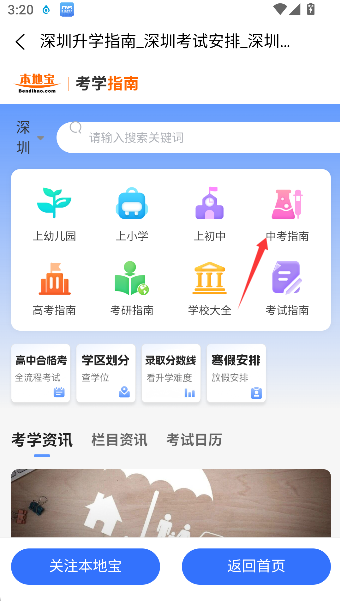 1、 打开《武汉本地宝》应用后,在首页显眼位置或教育服务分类中找到“考学指南”入口,点击即可进入升学信息查询页面。