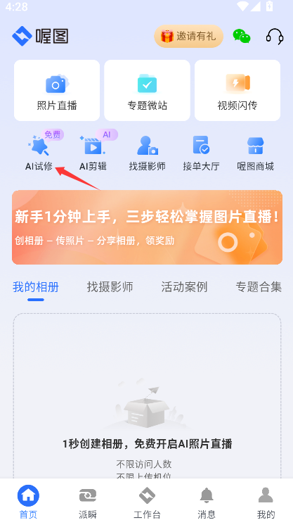 1、在主界面选择“AI修图”功能,进入智能图片处理模式。
