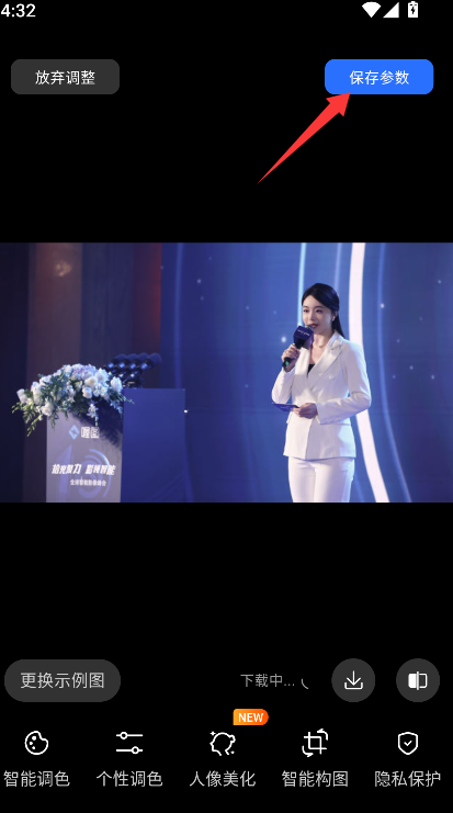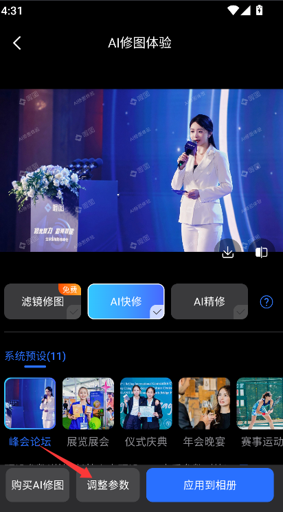 2、如需自定义效果,可点击“调整参数”按钮,进入设置面板。