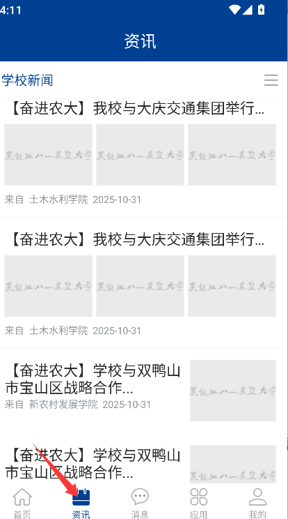 3、点击“学校新闻”后,系统将呈现分类清晰的校园公告与动态列表,便于逐条浏览最新资讯。