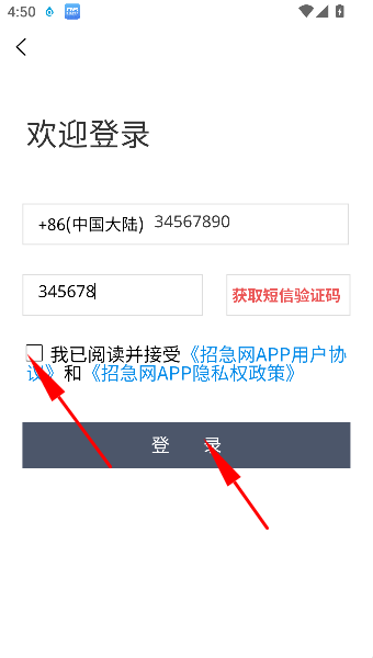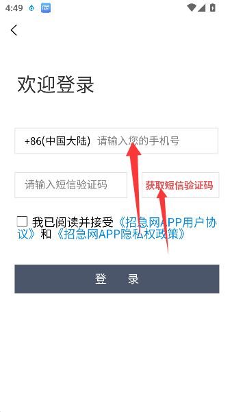 3、 收到短信后输入验证码,仔细阅读并同意相关服务条款,最后点击登录按钮即可成功进入个人账户。