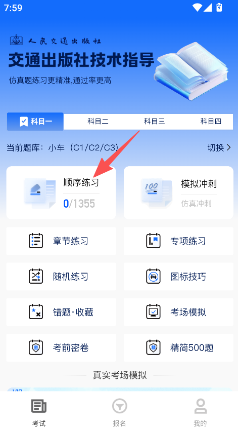 1、打开软件,点击顺序练习,进入刷题界面。