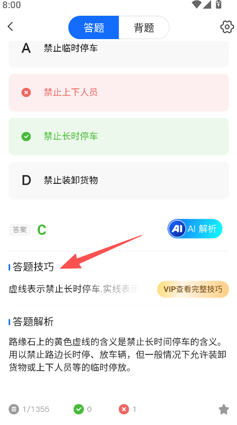 3、查看答题技巧和解析,巩固知识点。