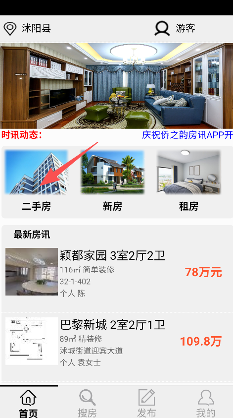 1、具备多类型房产分类功能,二手房、新房、租房可选,用户快速定位目标房源,置业选择便捷。