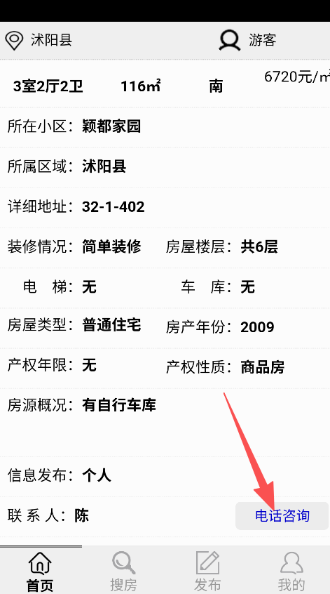 3、具备电话咨询功能,提供直接对接房源方的渠道,用户获取房源信息,置业体验顺畅。