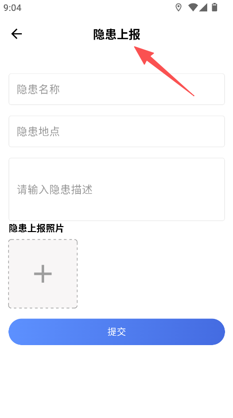2、进入隐患上报,填写隐患名称、地点等信息,提交上报。