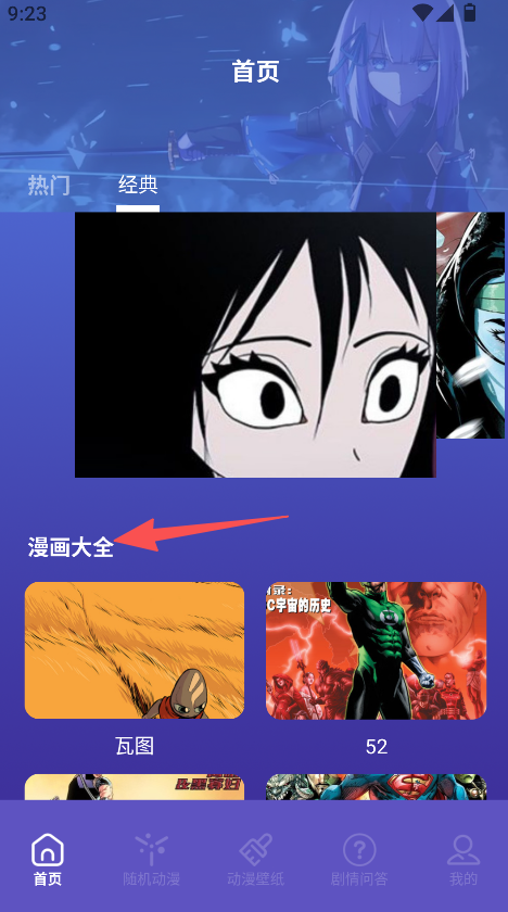 1、进入首页漫画大全。