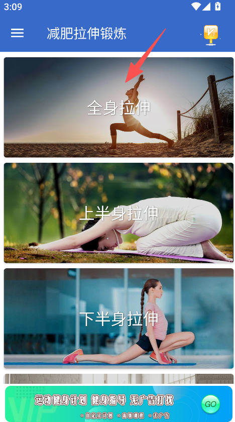 1、拉伸分类细致,全身、上半身、下半身拉伸齐全,满足用户不同部位减肥拉伸需求,锻炼选择精准。