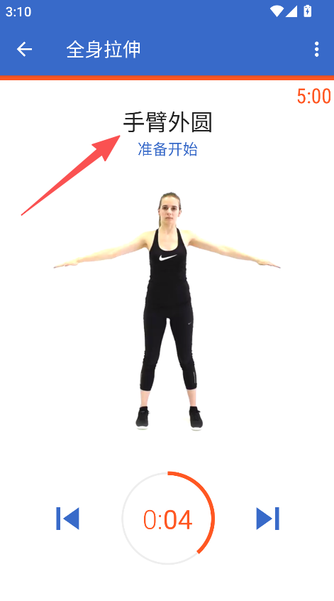 3、跟随动作指导(如手臂外圆),完成拉伸锻炼。