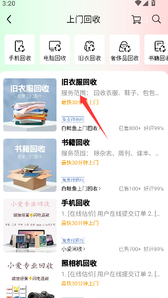 1、登录后轻触“上门回收”图标,仿佛按下绿色生活的快捷按钮,召唤一位专业的回收大侠前来相助。