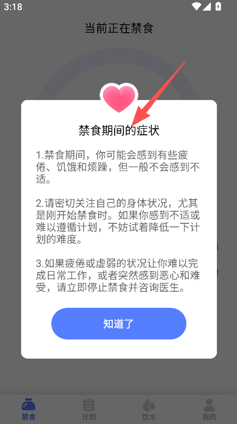 2、支持健康指导功能,提供断食准备、症状说明,用户科学断食,健康风险可控。