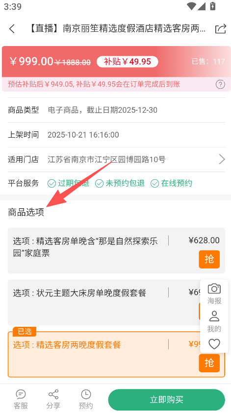 3、拥有购买消费功能,提供商品选项选择与立即购买渠道,用户完成本地服务消费,体验完整。