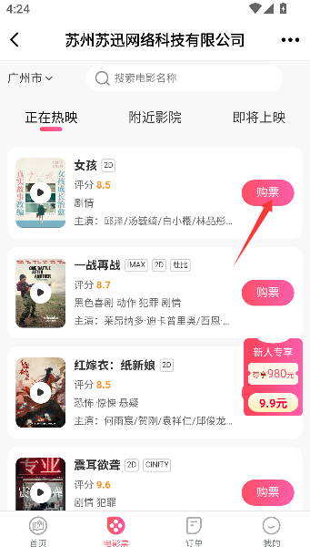 1、在首页找到那个闪着胶片光芒的“电影购票”入口,像推开一扇通往娱乐世界的大门,轻轻一点就能开启观影之旅。