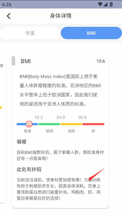 2、自动调用分析算法,评估身体质量指数等关键指标,并生成简要健康状况报告。