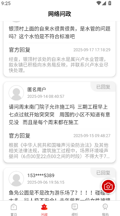 3、在“我的问政”或“历史记录”中查看该问题的处理进度,当收到回复时会有通知提示,点击即可查看官方答复内容。