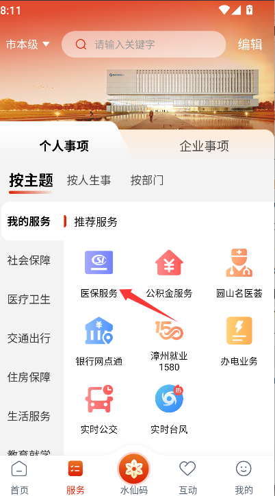 2、浏览并选择"医保服务"这一功能模块,点击后系统将跳转至医保业务专属服务界面。