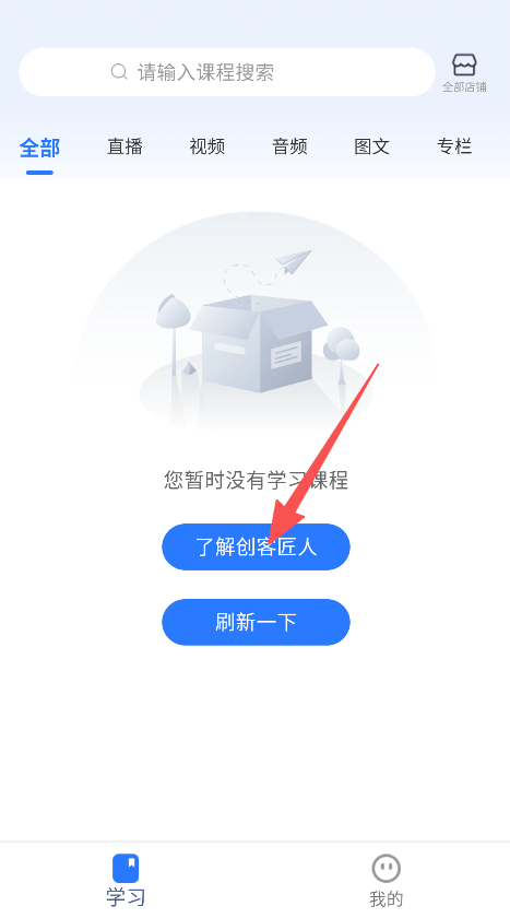 1、进入学习板块,点击了解创客匠人,进入创客匠人介绍页面。
