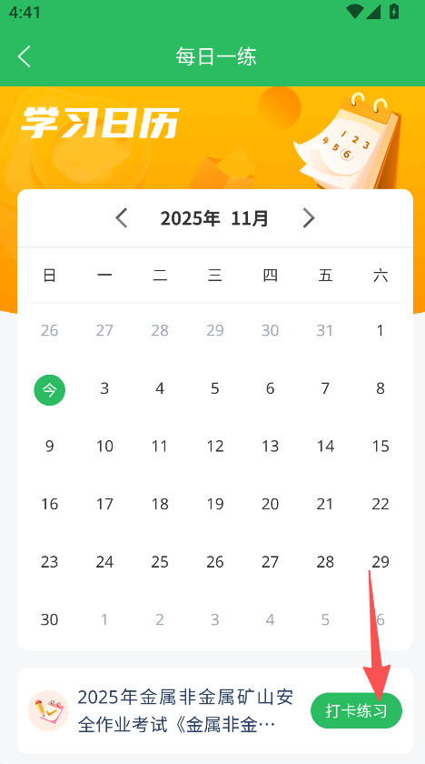 1、点击每日一练,进入学习日历页面,选择日期点击打卡练习。