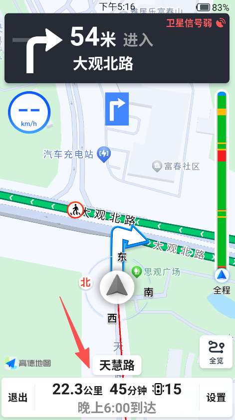 3、进入导航界面,查看路线距离、耗时及实时导航指引,按提示行驶。