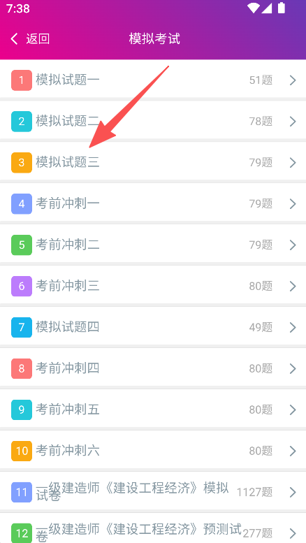 2、选择模拟试题三,进入具体试题练习。