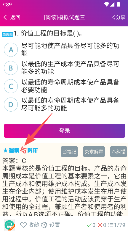 3、查看题目,点击答案与解析,学习题目解析,巩固考点。