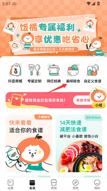 1、浏览并找到“美味轻食”分类入口,点击后即可进入该分类下的完整菜品列表页。