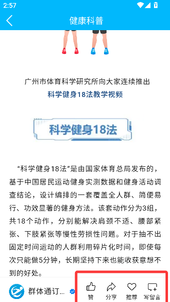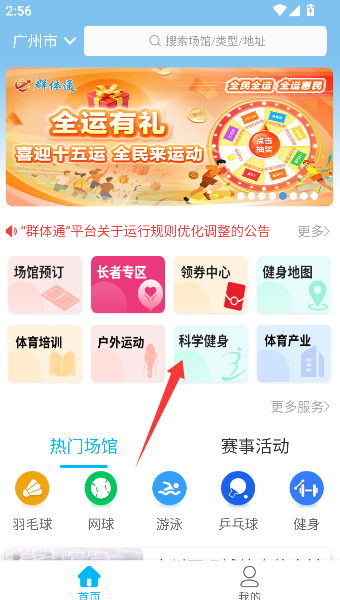 1、打开广州群体通,用你充满活力的手指戳中首页那个诱人的“科学健身”按钮,开启健身知识宝库的大门。