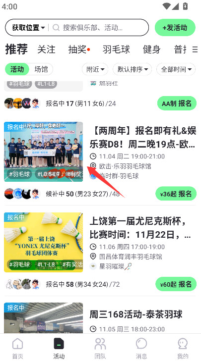 2、浏览并选择一项希望分享的具体活动,点击进入该活动的详细说明页面。