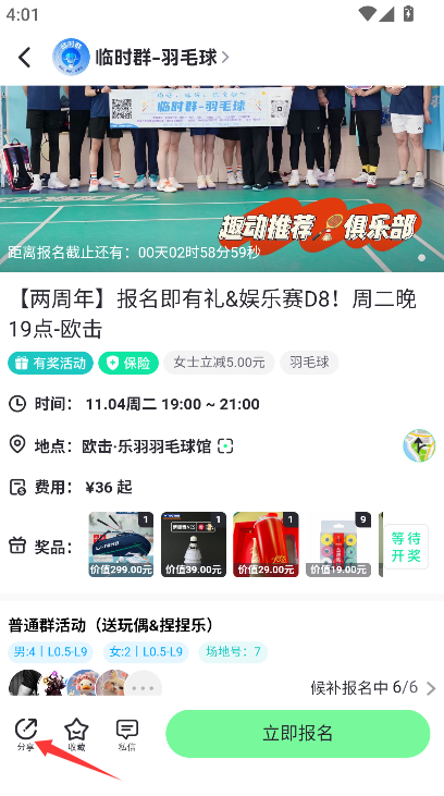 3、定位并点击“分享”按钮,即可通过弹出的菜单将活动信息发送给好友或分享至其他平台。