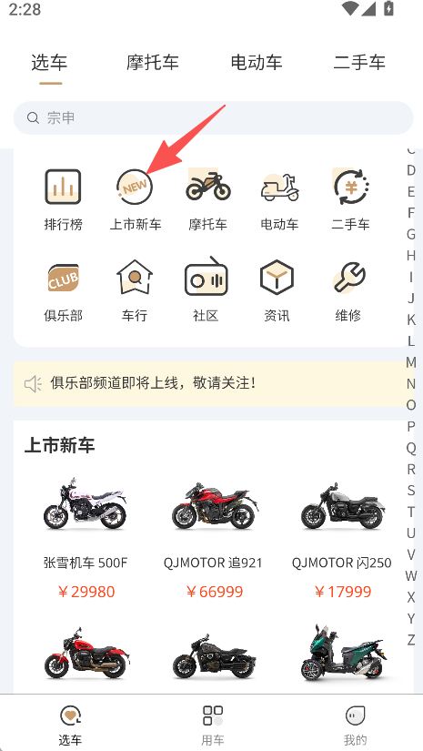 1、板块丰富,包含摩托车、电动车、二手车选车,还有上市新车、排行榜、俱乐部等,覆盖摩托相关多领域需求。