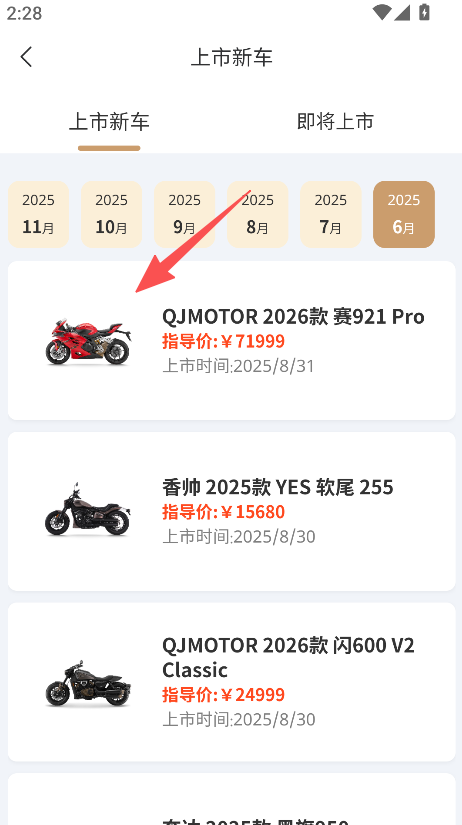 1、新车资讯及时,上市新车板块按时间分类,如2025年各月新车,让用户第一时间了解新款车型。