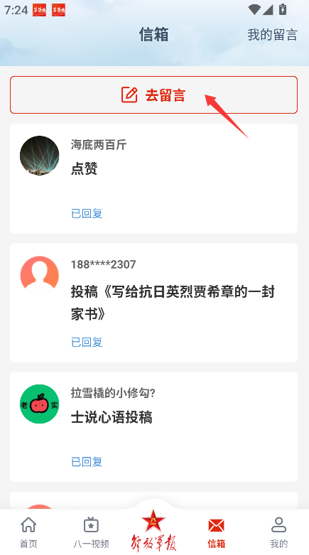 2、点击页面上方清晰标注的“去留言”按钮,系统将引导至留言编辑页面。