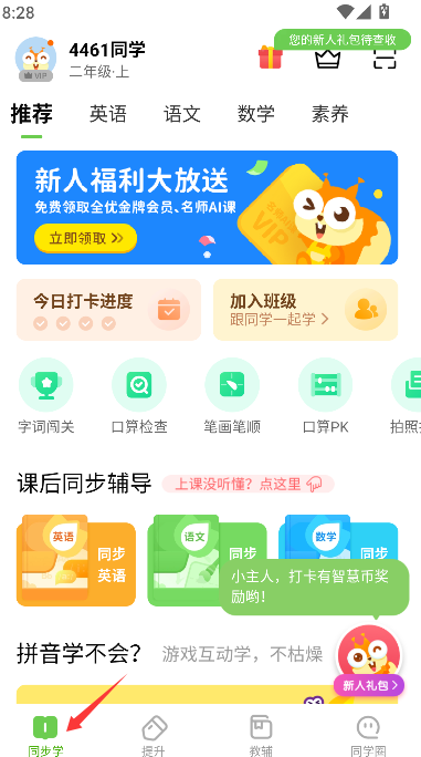 2、找到并点击“同步学”功能入口,页面随即跳转至同步学习主界面。