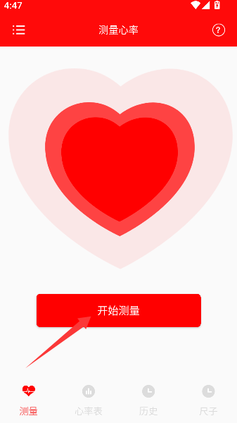 2、轻触屏幕中央的“开始测量”按钮,仿佛按下了一台精密仪器的启动键,准备开启心跳探险之旅
