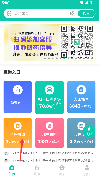 1、打开软件后轻点价格查询按钮,就像启动了一台智能比价雷达,准备扫描全网药价的秘密宝藏。