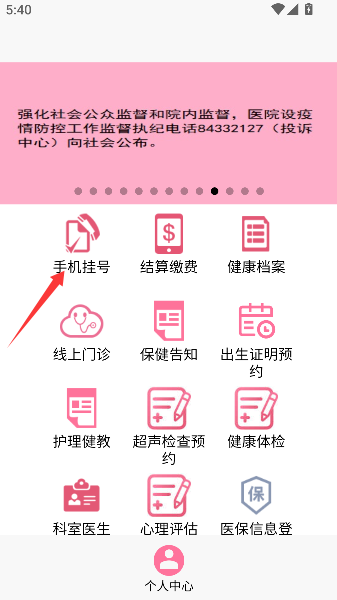 1、在软件首页找到手机挂号入口轻轻一点,就像启动了智能导诊小助手,准备为您锁定心仪的就诊时段。
