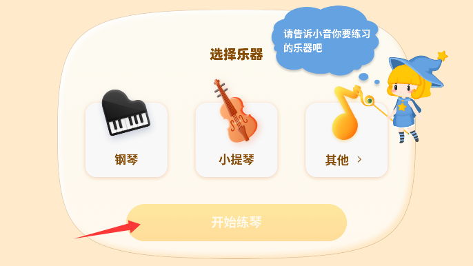 1、点击主页“开始练琴”,选择你要练习的乐器。