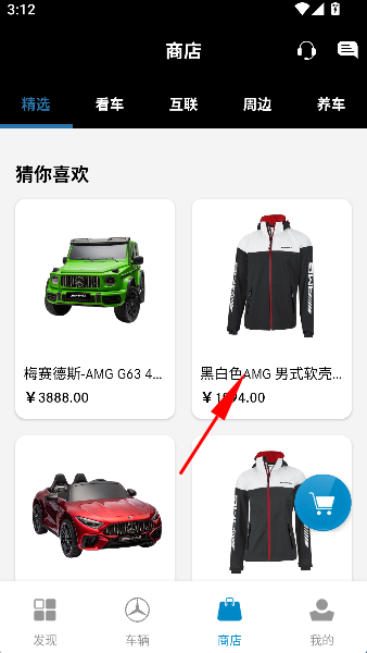 1、在应用首页轻触“商店”入口,宛如推开一扇通往梅赛德斯-奔驰精品世界的沉重大门。