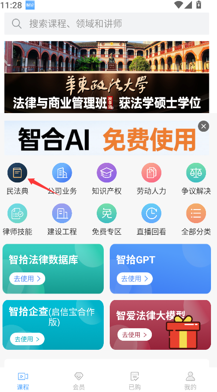 1、浏览并选定“名法典”这一核心学习模块,以进入法典学习界面。