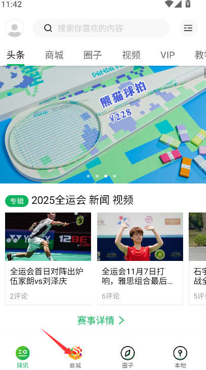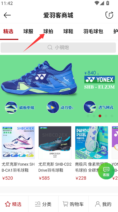 2、浏览商品分类,并选择“球拍”这一特定类别以进入专业装备列表。