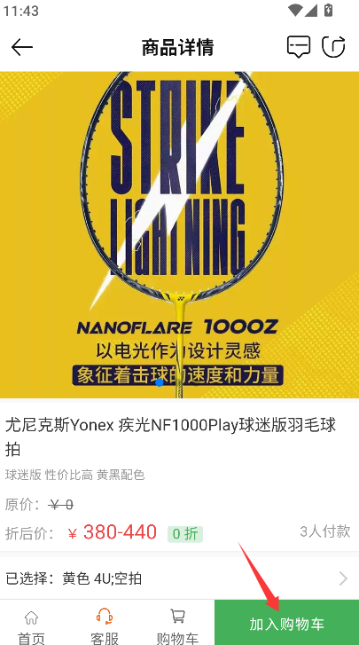 3、最终点选意向购买的球拍商品以查看详情并完成后续操作。