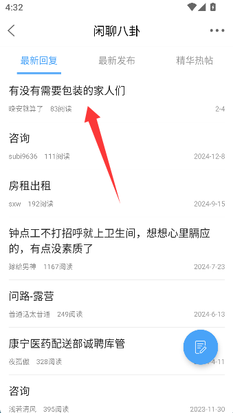 2、接着,用手指轻轻滑动屏幕,在五花八门的帖子中展开一场寻宝之旅,寻找最能勾起您兴趣的话题。