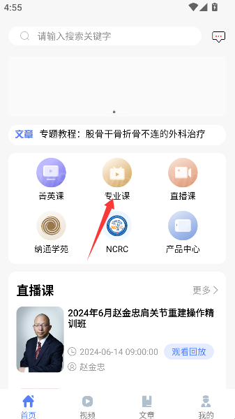 1、轻点应用图标踏入《骨今中外》,首页那座名为"专业课"的知识宝库大门正静候您的开启。