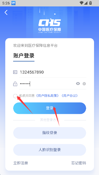 2、接着,在登录页面准确输入手机号码与密码,这组数字宛如一把精密的双锁钥匙,即将开启个人医保数据的大门。