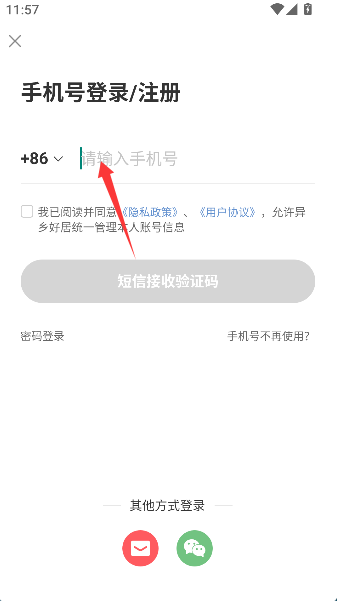 1、在登录页输入手机号码,就像为新家大门配一把专属钥匙,开启找房奇幻旅程的第一步。